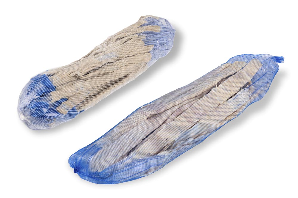Son presentadas en madejas de 30m naturales y conservadas en sal.